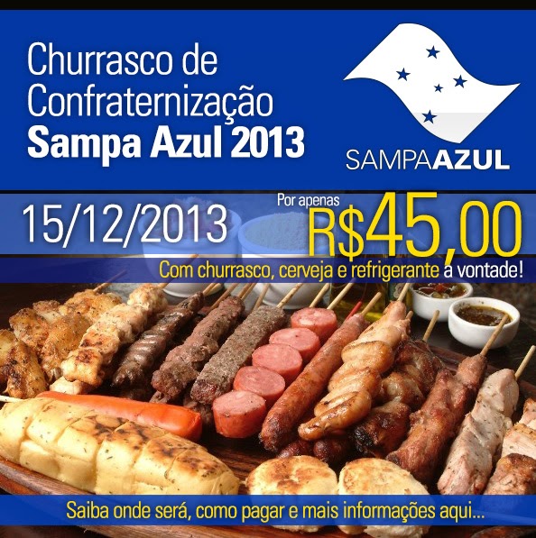 Para garantir sua presença, envie um e-mail para ‘sampaazul@gmail.com’ com o assunto CHURRASCO 2013, que passaremos as informações para o depósito.